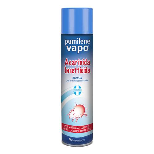 pumilene vapoAcaricida Insetticida Aerosol per uso domestico e civile. Ideale per materassi, coperte, tappeti, cuscini e copriletto. Formato Flacone spray da 400 ml.